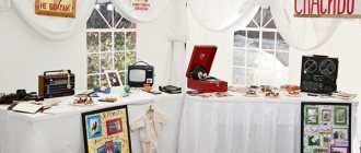 - Если есть возможность — установите граммофон или старый магнитофон. Они могут даже не работать, но отлично передадут дух торжества. Разложите виниловые пластинки.